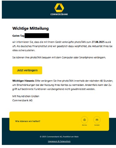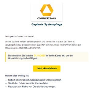 - Udpate 30.09.2025 – Betrügerische Wartungsankündigung im Namen der Commerzbank